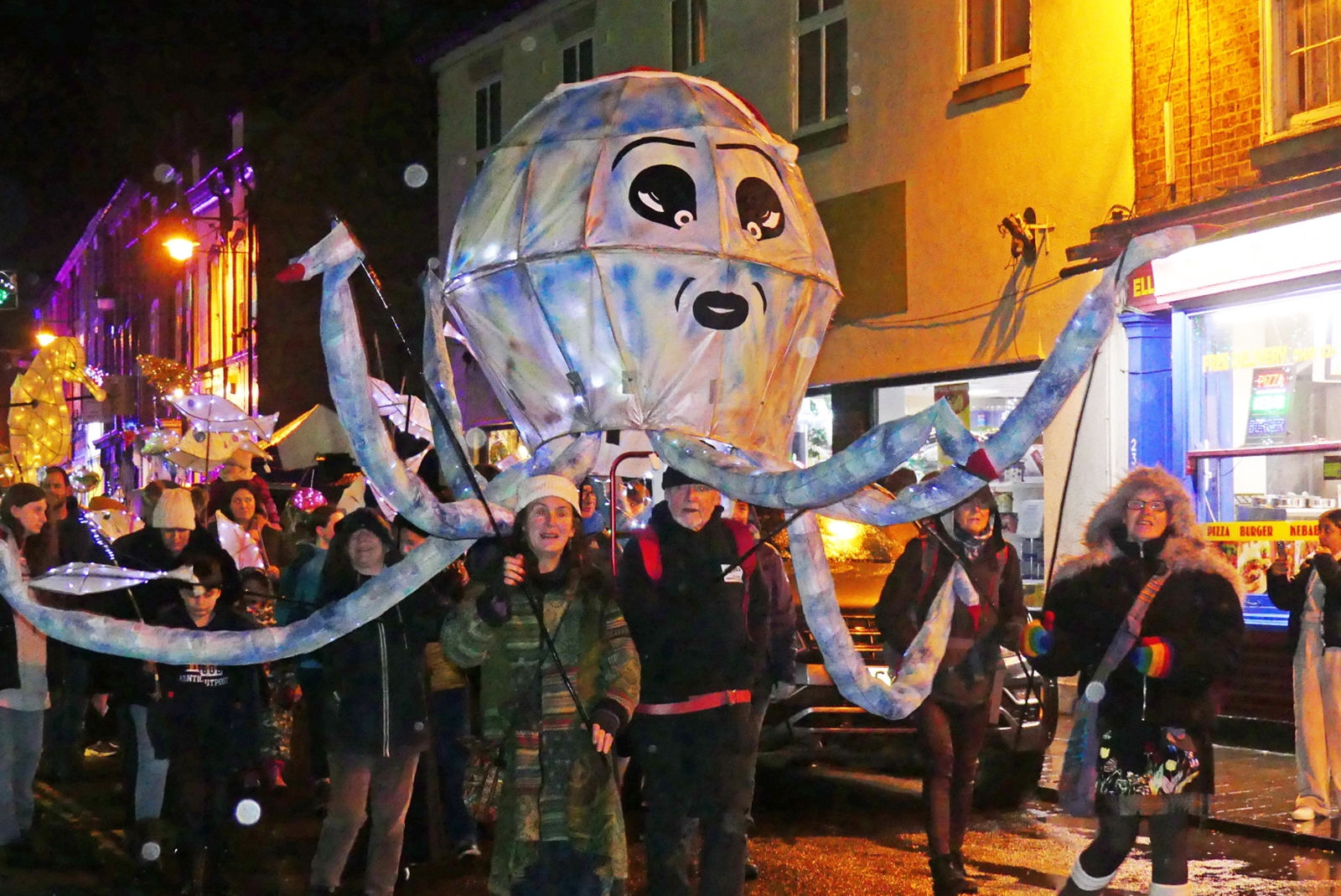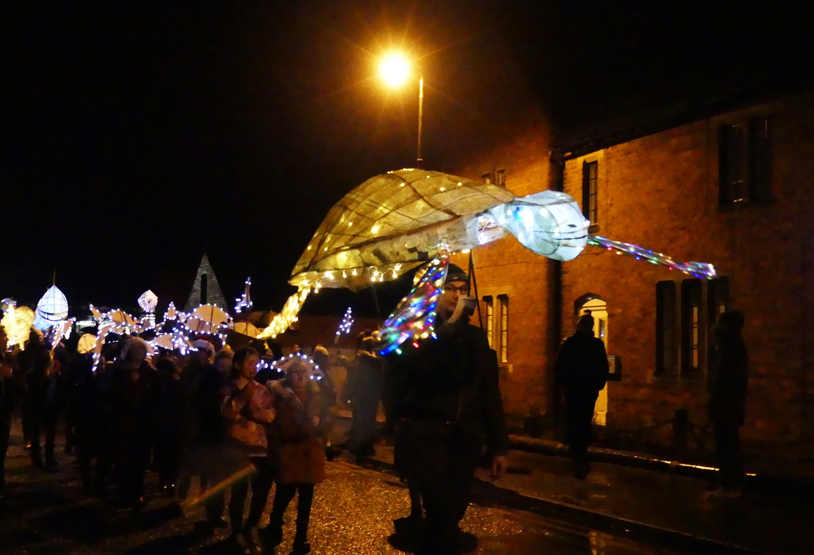 The workshops are free – donations welcome – you will be shown how to construct a lantern from withies (willow) and waterproof tissue paper. This year’s theme has not been revealed!
