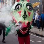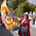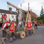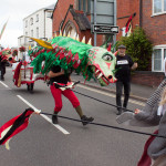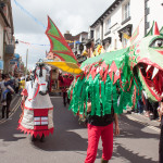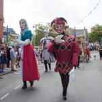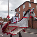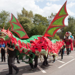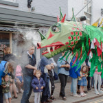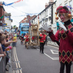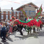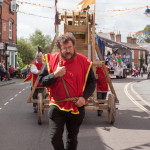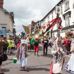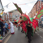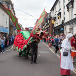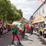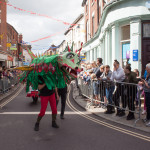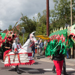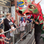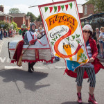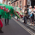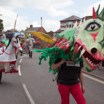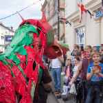 We paraded through the centre of Ellesmere with the giant puppets, the dragons, George and his horse…of course…and many other figures from our George and the Dragon comic theatre production the previous week, as part of the Ellesmere Carnival on Saturday August 17th. Fizzgigs also won the Carnival prize for best walking group!