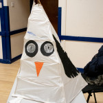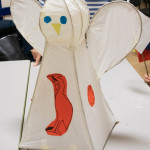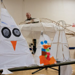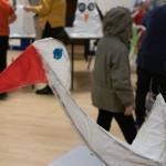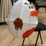 We held one full day and one evening community lantern workshop, in the town hall in Ellesmere, where many children with mums, dads, grannies and grandads created and built their very own individual lantern to carry in the Winter Festival. Fizzgigs members also used the opportunity of a large space to finish one of their larger lanterns.
