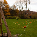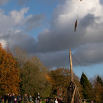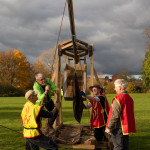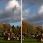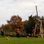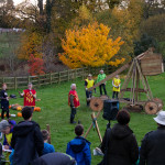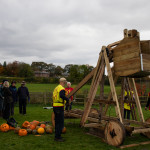 At the Recreation Ground in Ellesmere, on Sunday 3rd November, we flung 50 pumpkins from our fantastical Trebuchet in 2 hours over a distance of almost 75m. Just for the fun of it! See the photos below……