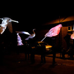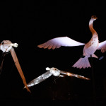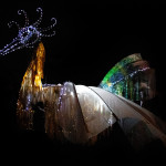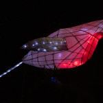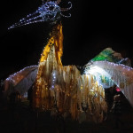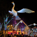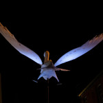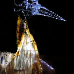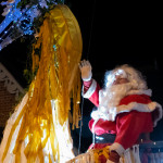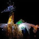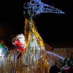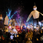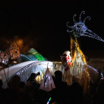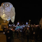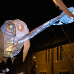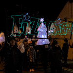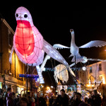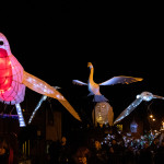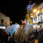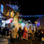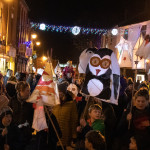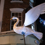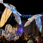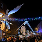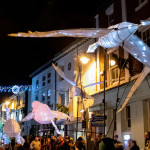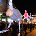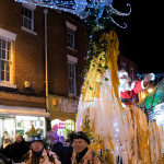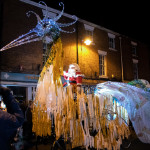 Friday 29th November, 2019: Santa returned to town on a narrowboat, arriving at The Wharf to join the fantastical Fizzgigs winter parade riding on the back of a 5m high beautiful magical-looking bird. The Fizzjigs street band led the procession of beautiful bird images through the town, arriving at the Market Hall where Santa returned to his Grotto to meet more children