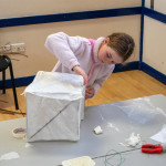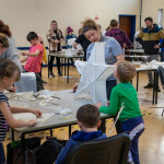 As in previous years we held two community lantern workshops in the Town Hall on Thursday 18th November (from 5 – 9pm), and Saturday 20th November (from 2 – 6pm). These happen before the Winter Festival, so that children, parents, grandparents and anybody else who may be interested, can join us in building their own individual lantern for the Fizzgigs Winter Festival procession that leads Father Christmas into town from the Wharf. This year we focused on making lantern presents and stars to fit in with our theme of a Child’s Christmas Dream. Fizzgigs members also used the opportunity of a large space to finish some of their larger lanterns.