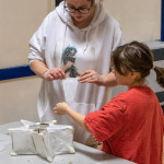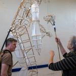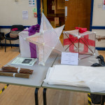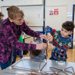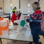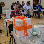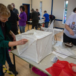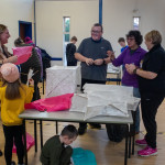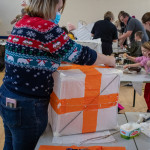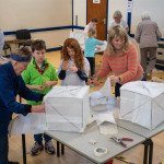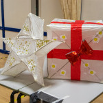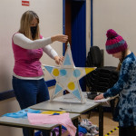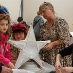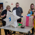 As in previous years we held two community lantern workshops in the Town Hall on Thursday 18th November (from 5 – 9pm), and Saturday 20th November (from 2 – 6pm). These happen before the Winter Festival, so that children, parents, grandparents and anybody else who may be interested, can join us in building their own individual lantern for the Fizzgigs Winter Festival procession that leads Father Christmas into town from the Wharf. This year we focused on making lantern presents and stars to fit in with our theme of a Child’s Christmas Dream. Fizzgigs members also used the opportunity of a large space to finish some of their larger lanterns.