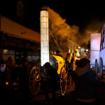 This years winter festival was on Friday 25th November with the Community Lantern Workshops on 17th and 19th November where many families came and made their own signal lanterns to carry in the procession. The theme for 2022 was trains. The Brownies joined us with an 8 carriage long lantern train following our guardsman lantern and we had a fully working signal leading the main star of the parade, a full-size lantern model of Stevenson’s Rocket, with moving pistons and smoke to bring Father Christmas from the canal wharf into the town.