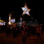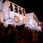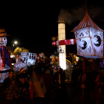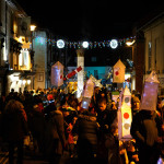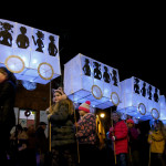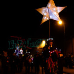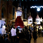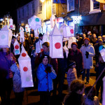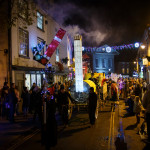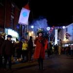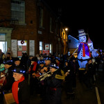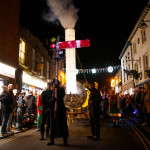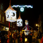 This years winter festival was on Friday 25th November with the Community Lantern Workshops on 17th and 19th November where many families came and made their own signal lanterns to carry in the procession. The theme for 2022 was trains. The Brownies joined us with an 8 carriage long lantern train following our guardsman lantern and we had a fully working signal leading the main star of the parade, a full-size lantern model of Stevenson’s Rocket, with moving pistons and smoke to bring Father Christmas from the canal wharf into the town.